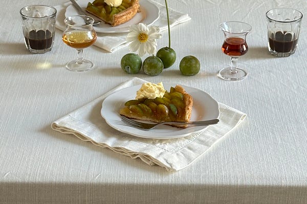 sweet, fleeting, perfect: greengage tarte tatin with vanilla clotted cream