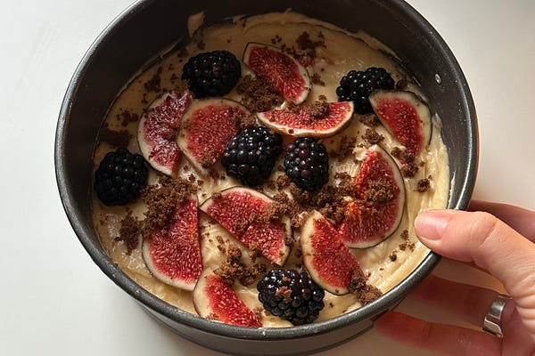 I’d been meaning to try Marion Burros’ plum torte for ages but only had some figs and a handful of blackberries in the fridge, so I used those instead…